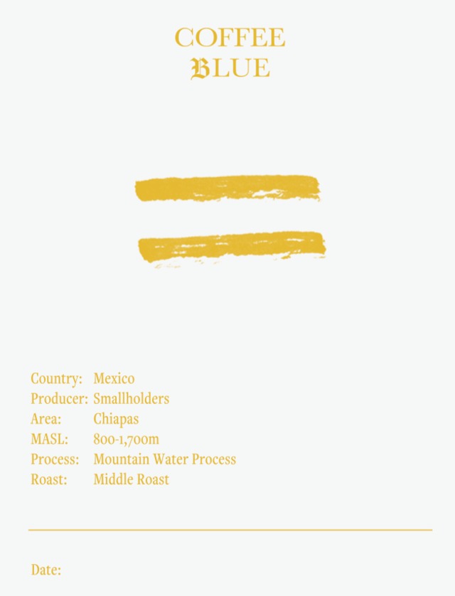 Mexico Chiapas Decaf 生産国:Mexico(メキシコ) 生産者: Small Farmers(農協に属する小規模生産者 約1,000名) 地域:Chiapas(チアパス州) 農園名: チアパス州の生産者組合 標高:800-1,700m 生産処理:Mountain Water Process(マウンテンウォーター製法) 焙煎度:Middle Roast(中煎り) 柑橘系のとても柔らかな酸質と、スイートポテトやアーモンドの様な風味と甘さがあります。 中煎りに仕上げているので、キャラメルのような心地よいビターさを感じます。 デカフェですが、しっかり個性を感じられる美味しいコーヒーです。